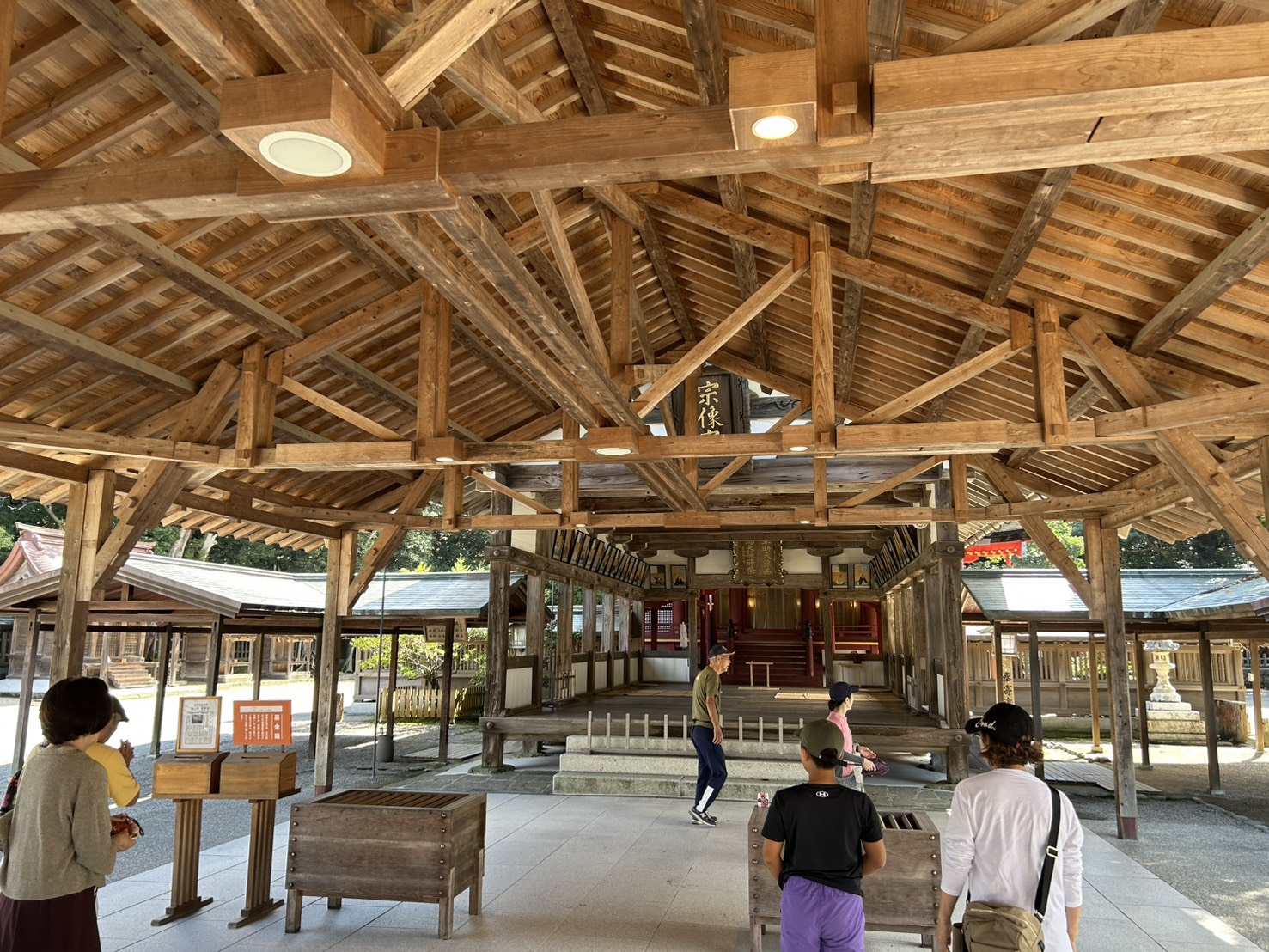 この日は秋の気配が感じられる穏やかな陽気で、差し込む陽の光が社殿の木肌をやわらかく照らしていました。