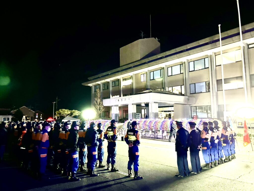 昨夜は厳しい寒さの中、南区消防団員80名、車両19台が参加し、午後7時から力強い出発式が行われました。