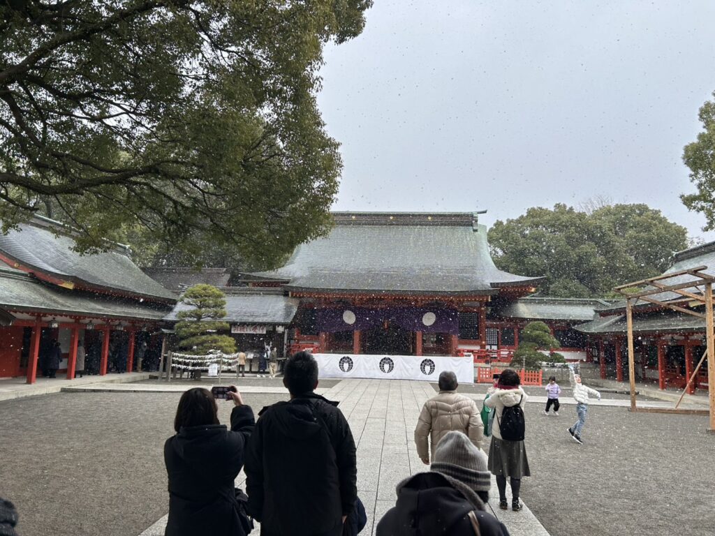 初詣 熊本市 2026.01.11 政治の師匠である野田先生ご夫妻と秘書OBによる恒例の初詣に参加しました。 11日になっても藤崎宮には多くの参拝客が訪れ、今年一番の寒波の中、境内は吹雪のような厳しい寒さでした。 現在、秘書OBには私を含め現役の県議・市議が計6人おり、皆それぞれ野田先生の薫陶を胸に、各議会で地域のために活動しています。 厳しい社会情勢の中でも志を同じくする仲間とともに、今年一年の健康とさらなる活躍を祈り、心新たにスタートを切りました。