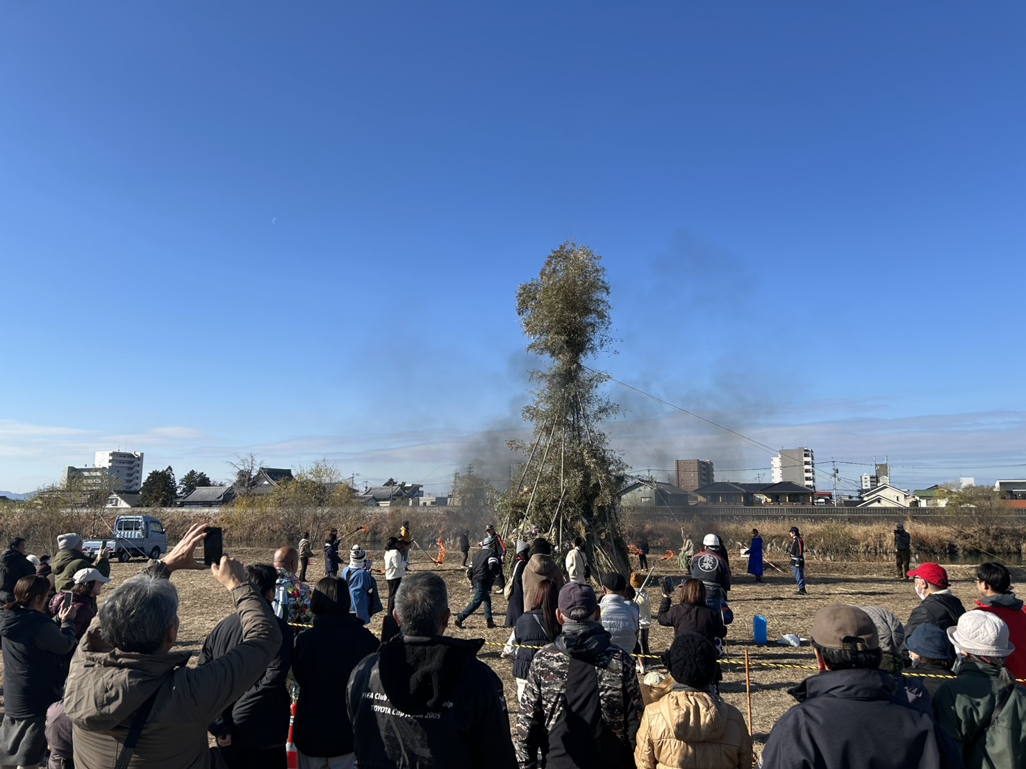 どんど焼き 熊本市 2026.01.12 昨日の消防団や地域の新年会に続き、今日は各地のどんど焼きを巡りました。 宅地化の進行で、やむなく中止となる地域も増えていますが、子どもたちに歴史や伝統文化を伝える場が失われるのは寂しいことです。 竹を切り出し櫓を組み、草刈りをし、ぜんざいや焼き芋を準備する〜その一つひとつに地域の皆さんの温かな思いが込められています。 こうした支えがあってこそ、地域の絆は守られているのだと改めて感じました。 今年が、今日の青空のように晴れやかで実り多い一年になることを願っています。