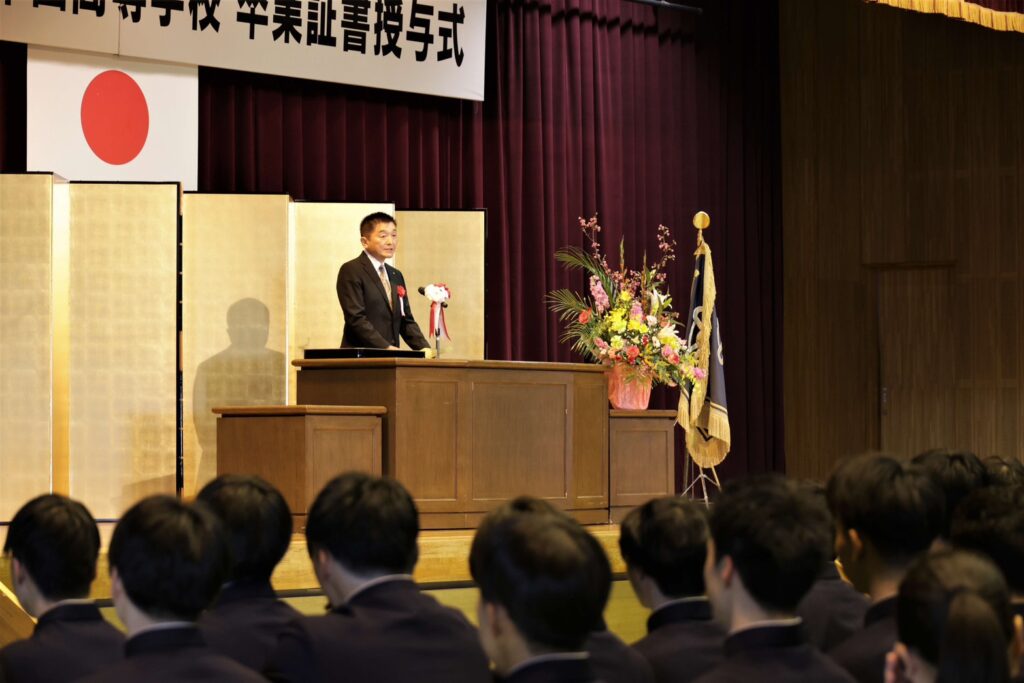 その上で「母校の誇りを胸に、胸を張って堂々と歩んでいただきたい!」と祝辞のあとに付け加えたのでした。